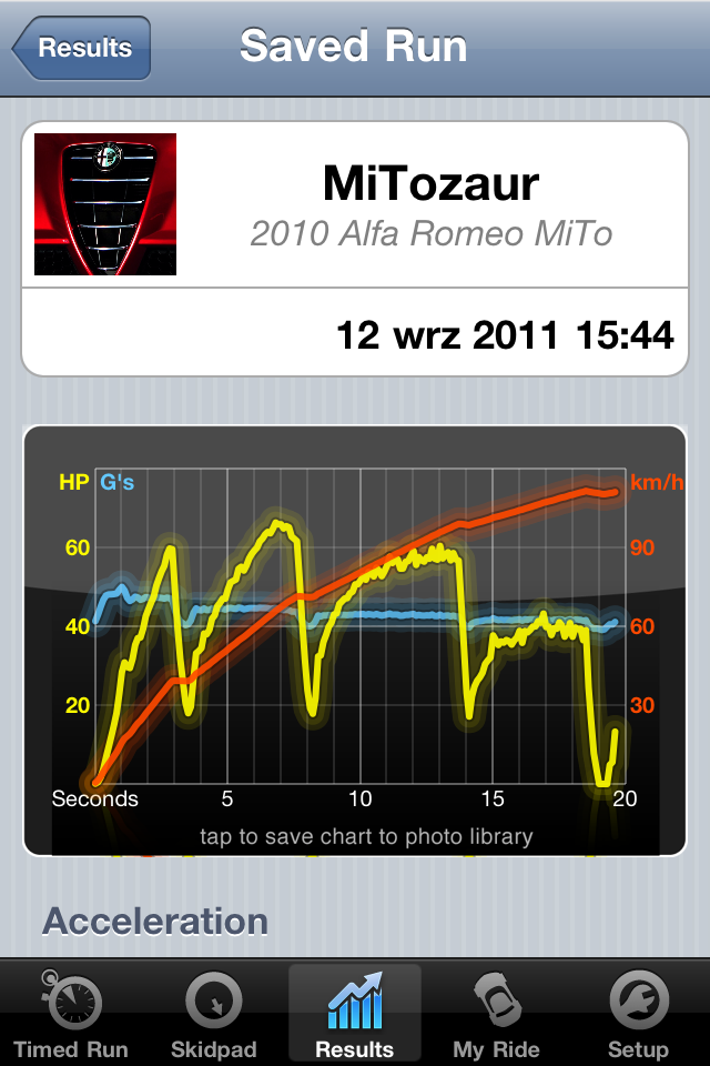 Zainspirowany wpisem jednego z użytkowników polskiego portalu motoryzacyjnego postanowiłem poszukać programu w stylu symbianowego GTx ale na iOSa. Ot, chciałem przekonać się czy w ogóle podobny soft jest i – co ważniejsze – zbadać jak zachowuje się moje auto gdy mu się „depnie” :P Oczywiście można wybrać się do profesjonalnego warsztatu, poddać samochód testom na hamowni itp. ale raz, że nie zawsze takie „ustrojstwo” znajdziemy w pobliżu naszego miejsca zamieszkania, a dwa: zwykle wiąże się z niemałym wydatkiem…