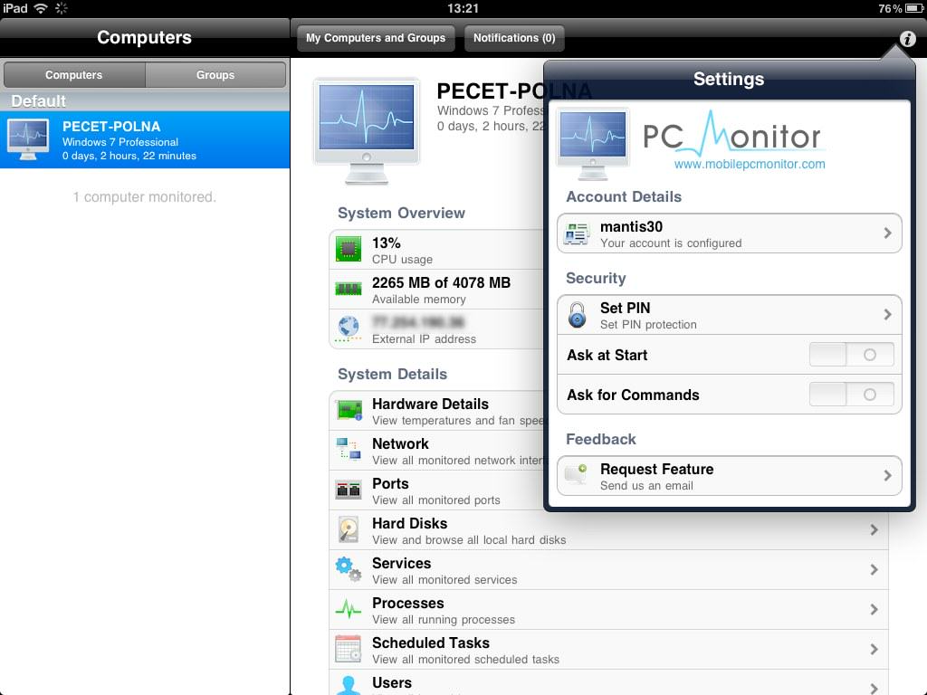 Czym jest PC Monitor? Nazwa sama wiele wyjaśnia :) Nie jest to aplikacja typu zdalny pulpit, pozwala jednak na szczegółowe zarządzanie zdalne komputerami oraz ich monitoring. Zarządzanie odbywa się z urządzeń mobilnych, poza iOS dostępne są programy na platformy Android oraz (sic!) na Windows Phone 7 :) Niestety póki co hostami, znaczy się komputerami które możemy nadzorować, mogą być tylko maszyny pracujące w środowisku Windows (zarówno 32 jak i 64 bity) oraz Linux. W podstawowej wersji możemy monitorować do 3 komputerów, producent oferuje roczne subskrypcje oraz PC Monitor Enterprise Server dla administratorów posiadających większe potrzeby.