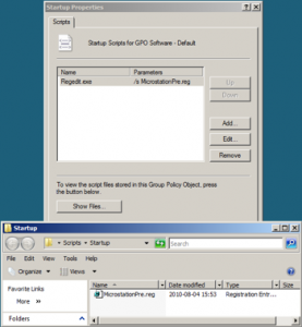 3. Sam plik .reg przenosimy do plików skryptu. Najprostszą drogą jest kliknięcie we właściwościach skryptów startowych opcji Show Files (Pokaż Pliki) i w otwartym oknie wkleić wcześniej przygotowany plik .reg do którego odnosi się nasz skrypt.