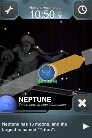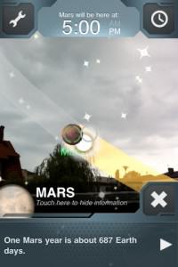 Rzecz jasna, program działa również w dzień, jednak przyznacie sami, że traci się wtedy całą frajdę. Bo czyż nie jest fajnie skierować oko iPhona na migoczącą na niebieskim prześcieradle gwiazdkę i zobaczyć kim jest owa nieznajoma, ba! poznać jej sekrety?
