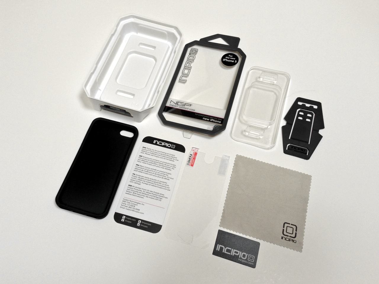 Jak widać na zdjęciach komplet zawiera: etui NGP, sprytną podstawkę przydatną do ustawienia telefonu w pozycji poziomej (np. do oglądania filmów), folię ochronną na ekran iPhone wraz z „aplikatorem” oraz szmatkę (z mikrofibry?).