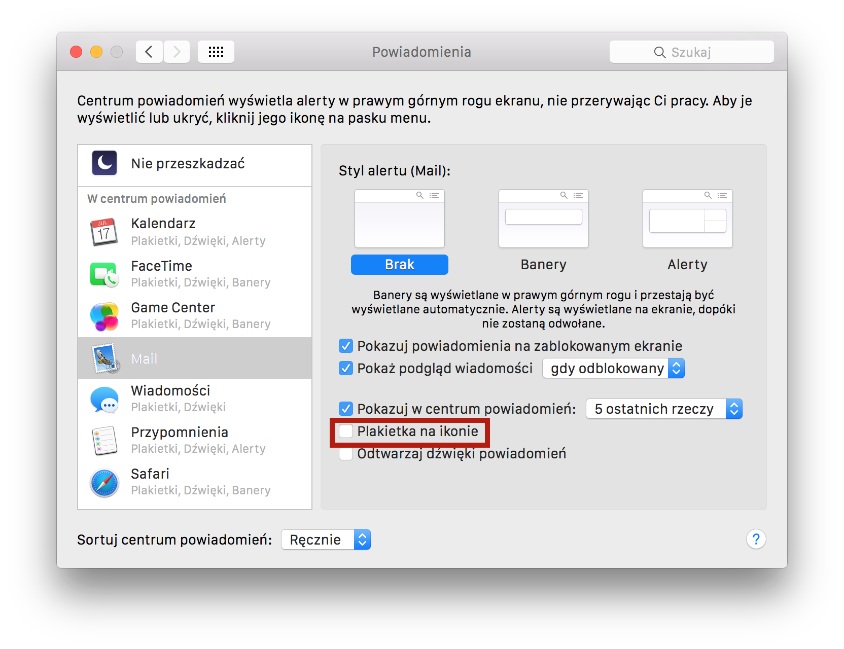 Wyłączenie plakietki z ilością wiadomości w aplikacji Mail